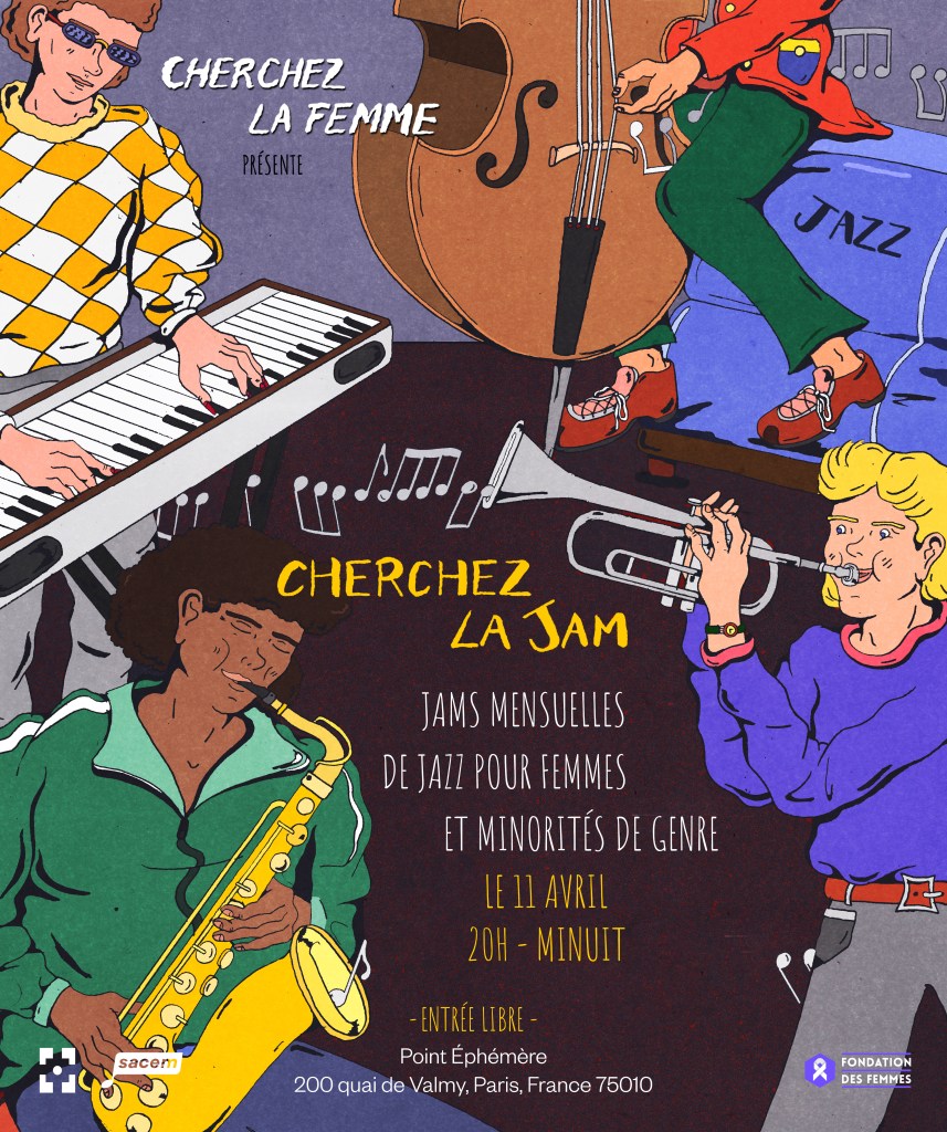 ✦ Une mixité choisie sur scène, où les femmes et minorités de genre sont au centre, mais où l’accueil reste ouvert à toutes et tous dans un esprit de respect et d’équité.Le projet est organisé main dans la main avec le Point Éphémère, et s’inscrit dans une démarche artistique et politique visant à rendre plus inclusive la scène jazz – qui reste aujourd’hui celle où les femmes sont les plus absentes. Avec le soutien de la Sacem et de La Fondation des Femmes .